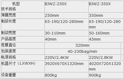 【BJWZ-250X/350X下走纸旋转式自动枕式包装机规格】
