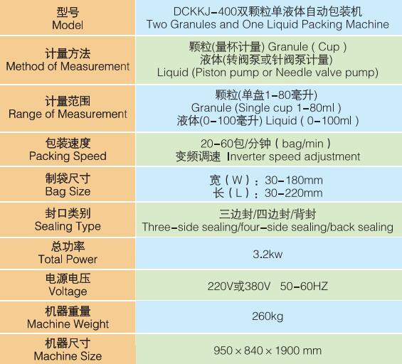 您的位置:首页 > 产品展示 > 颗粒自动包装机 > DCKKJ-400双颗粒单液体三列自动包装机