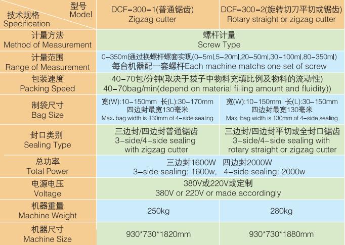 DCF-300-1/ DCF-300-2 平三边封/四边封粉末包装机
